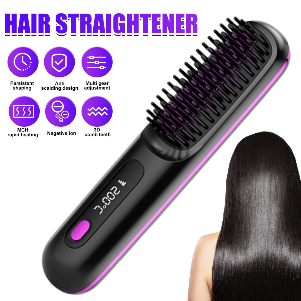 Mini Travel Hair Straightener Brush with Fast Heating